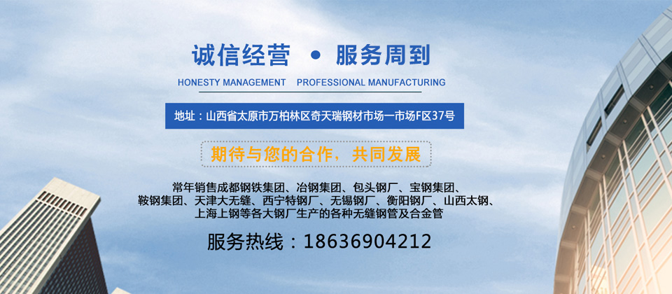 山西衡泰尚盈貿(mào)易有限責(zé)任公司是集生產(chǎn)加工經(jīng)營(yíng)于一體的無(wú)縫鋼管、不銹鋼管、合金管、鍋爐管、液壓支柱管、方管、方矩管、不銹鋼板等的大型企業(yè),常年銷(xiāo)售成都鋼鐵集團(tuán)、冶鋼集團(tuán)、包頭鋼廠(chǎng)、寶鋼集團(tuán)、鞍鋼集團(tuán)、天津大無(wú)縫、西寧特鋼廠(chǎng)、無(wú)錫鋼廠(chǎng)、衡陽(yáng)鋼廠(chǎng)、山西太鋼、上海上鋼等各大鋼廠(chǎng)生產(chǎn)的各種無(wú)縫鋼管及合金管。